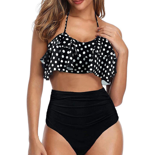 Sexy Swimwear 2021 Black Ruffle Swimming Suit For Women Dot Polka Swimsuit Padded Push-up Bikini Set Brazilian Beachwear#f3