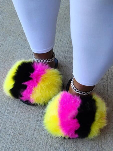 Yellow/Pink/Blk Fur Slides For Women Fluffy Hot Sale Summer Amazing Furry Sandals Non-slip Fluffy Plush Shoes Brand Luxury Slides Fur Slippers
